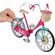 - A basket with removable pink flowers at the front dresses up her bicycle, too!