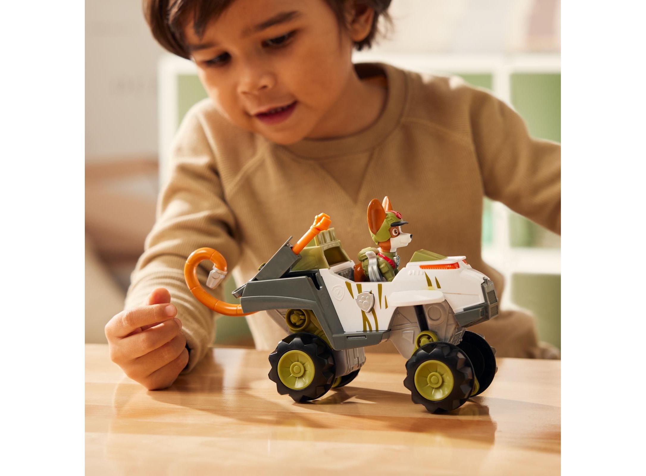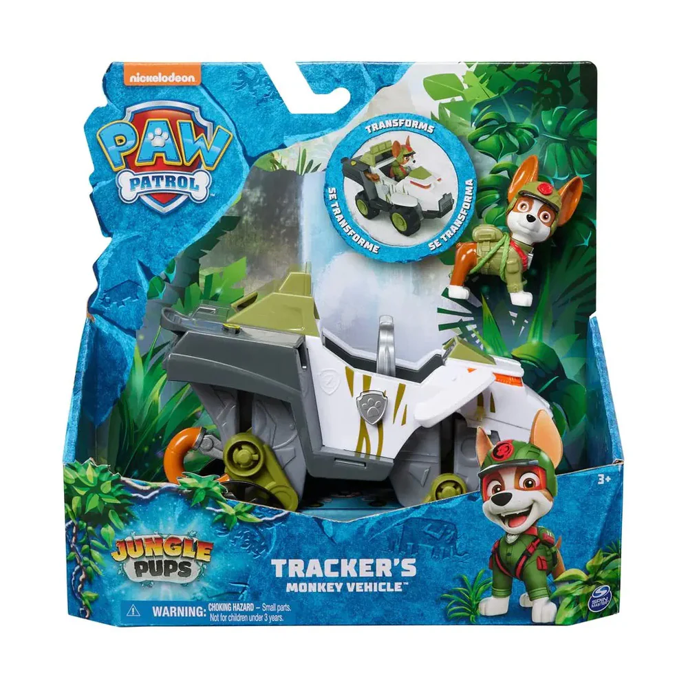 Features of the monkey car with the figure of the Paw Patrol guard dogs Tracker, Jungle Pups series