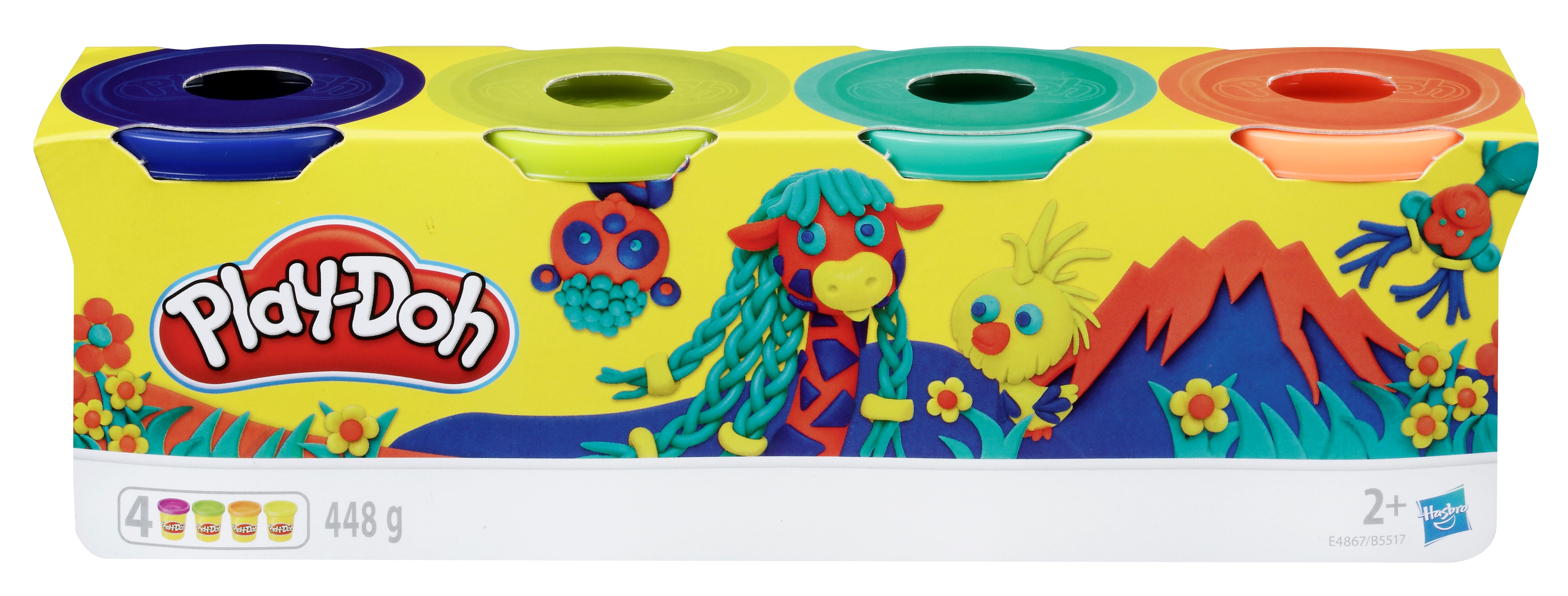 Squish up some fun with the essential Play-Doh 4 pack of colors! These 4 large four-ounce cans are great for all kinds of creative play including gifts, activities, classroom projects, or to refill any Play-Doh color collection. The 4-pack of colors also works well with any Play-Doh toolset or playset. The Wild collection features dark blue, lime green, teal green, and dark orange modeling compound.