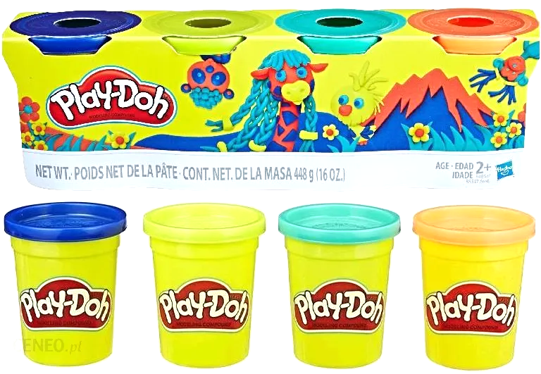 • Includes 4 four-ounce cans of Play-Doh Brand Modeling Compound (net weight 16 ounces/448 grams).